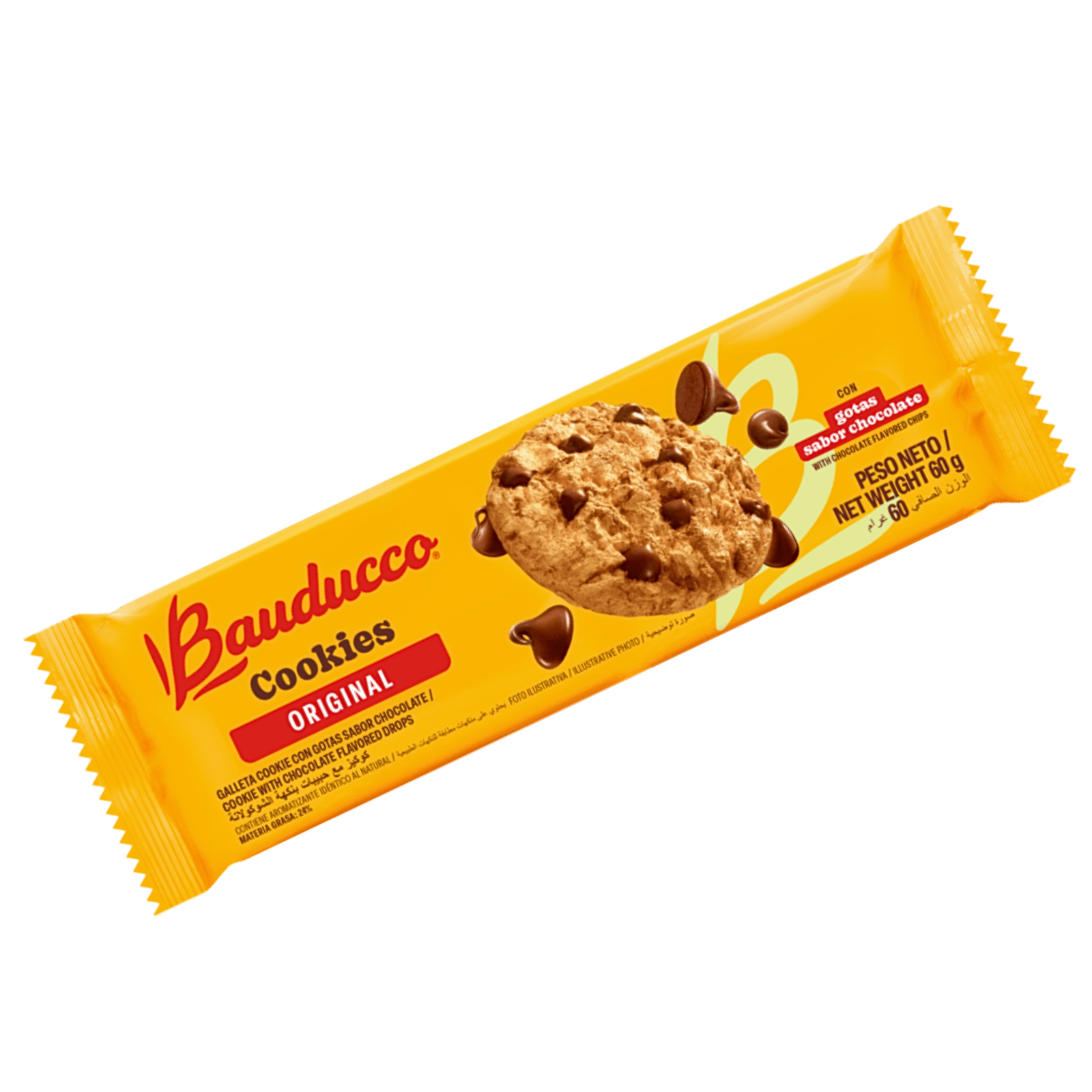 Les cookies Bauducco sont élaborés à partir d’ingrédients comme farine de blé, sucre et pépites de chocolat, garantissant une texture croquante et un goût sucré équilibré.
