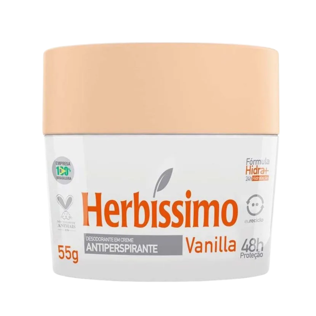 Déodorant Herbíssimo Vanilla 55g, un produit rafraîchissant et parfumé pour une protection longue durée contre les odeurs et la transpiration. Formulé avec des extraits naturels et un délicieux parfum de vanille, ce déodorant allie efficacité et douceur pour une sensation de fraîcheur tout au long de la journée.